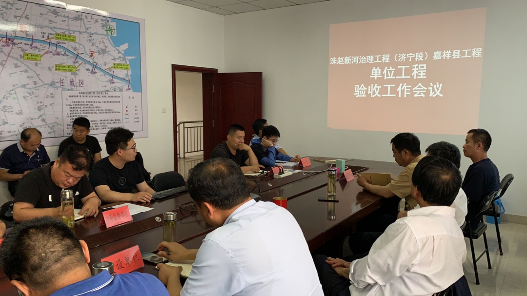 2020年5月30日,洙赵新河治理工程(济宁段)嘉祥县工程建设管理处主持召开了洙赵新河治理工程(济宁段)嘉祥县工程单位工程完工验收会议。济宁市水利事业发展中心洙赵新河分中心、洙赵新河治理工程(济宁段)嘉祥县工程建设管理处、山东龙跃兴设计集团有限公司、水发规划设计有限公司、山东省淮海工程建设监理有限公司、山东省水利勘测设计院、济宁市水利工程建设质量与安全监督站、山东省第二水利工程局有限公司等单位的代表参加了会议。
