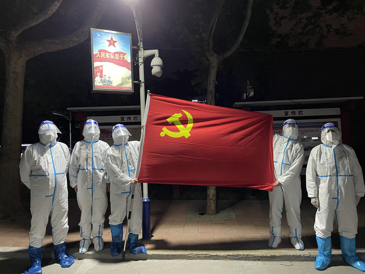 由人力资源部阴冠一、审计部石天禹、机料管理部李景仰、第二分公司赵书宇、第三分公司焦鲁坤、第六分公司魏中坤组成的突击队,在急难险重任务中冲锋在前,按照街道办要求以二级防护状态投入到此次疫情防控大筛查中。面对拥有20栋楼,2000多人的大社区,他们合理分工,有条不紊的开展扫码备案、维护秩序、挨家挨户敲门等工作。志愿服务从下午五点一直持续到晚上十一点,汗水浸透了防护服里面的衣服,脸上却透露出不畏风险、勇往直前的信念。