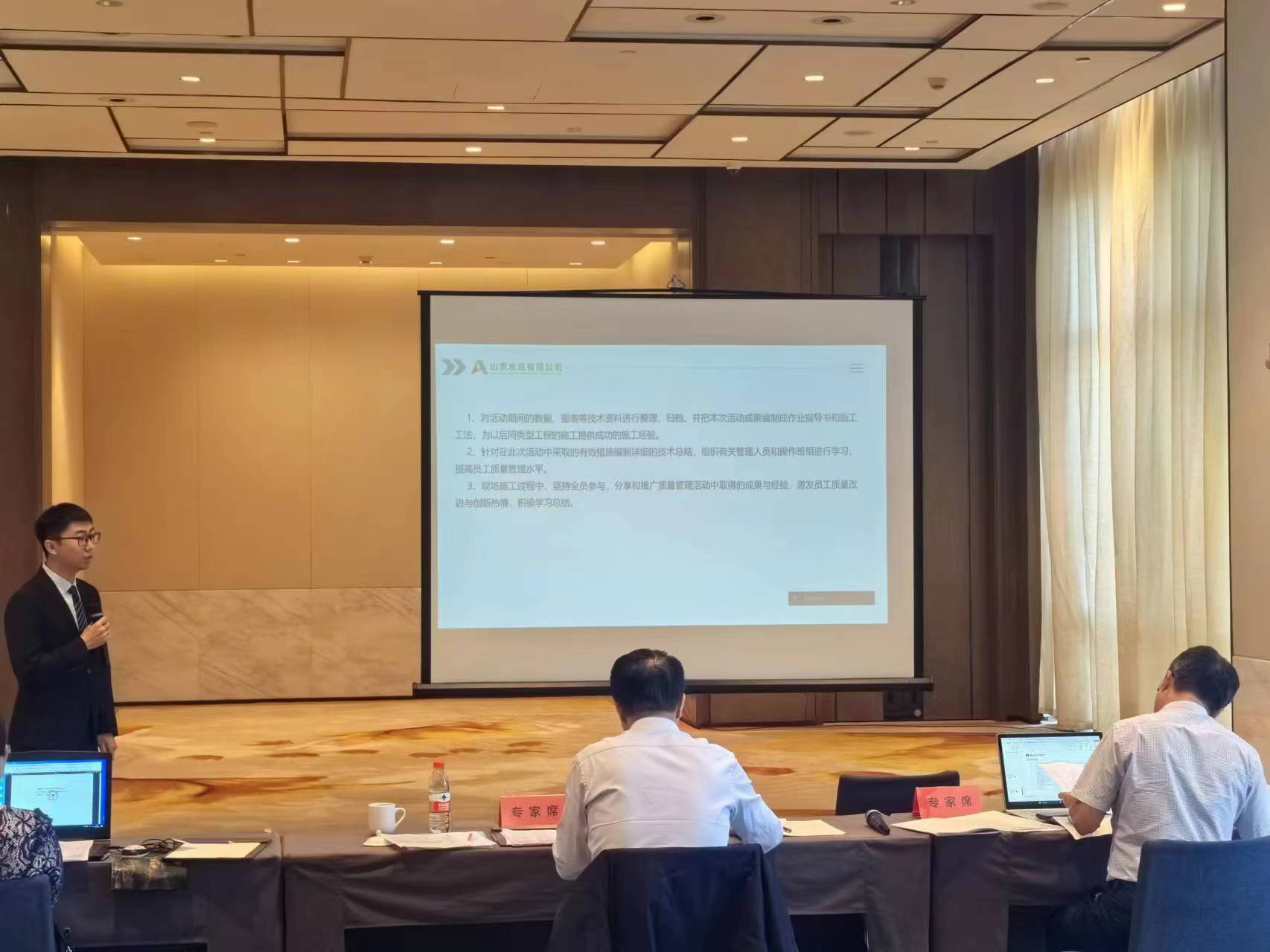 近日,中国水利工程协会2023年度水利工程优秀质量管理小组成果发布会在福州举行,山东水总第三分公司申报的《提高河道砼连锁块安装一次验收合格率》,第七分公司申报的《对称式操作平台的研发与应用》成功参与现场发布,受到了与会专家的一致好评。